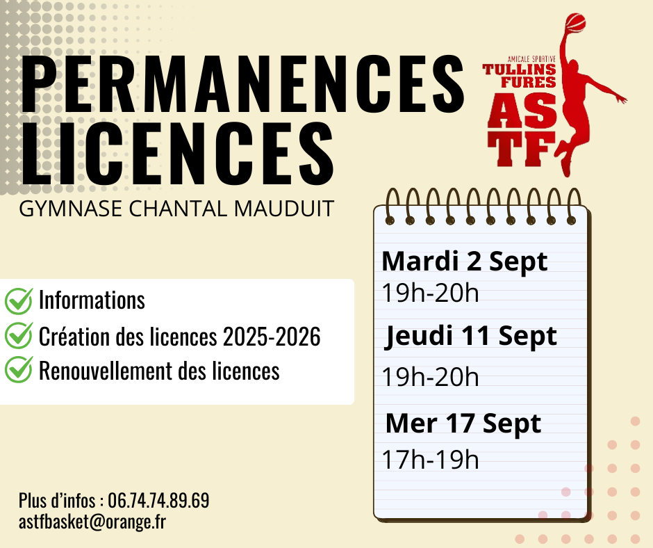 Afin de vous transmettre tous les renseignements et vous aider dans vos démarches administratives de licences, trois permanences seront organisées aux dates suivantes :