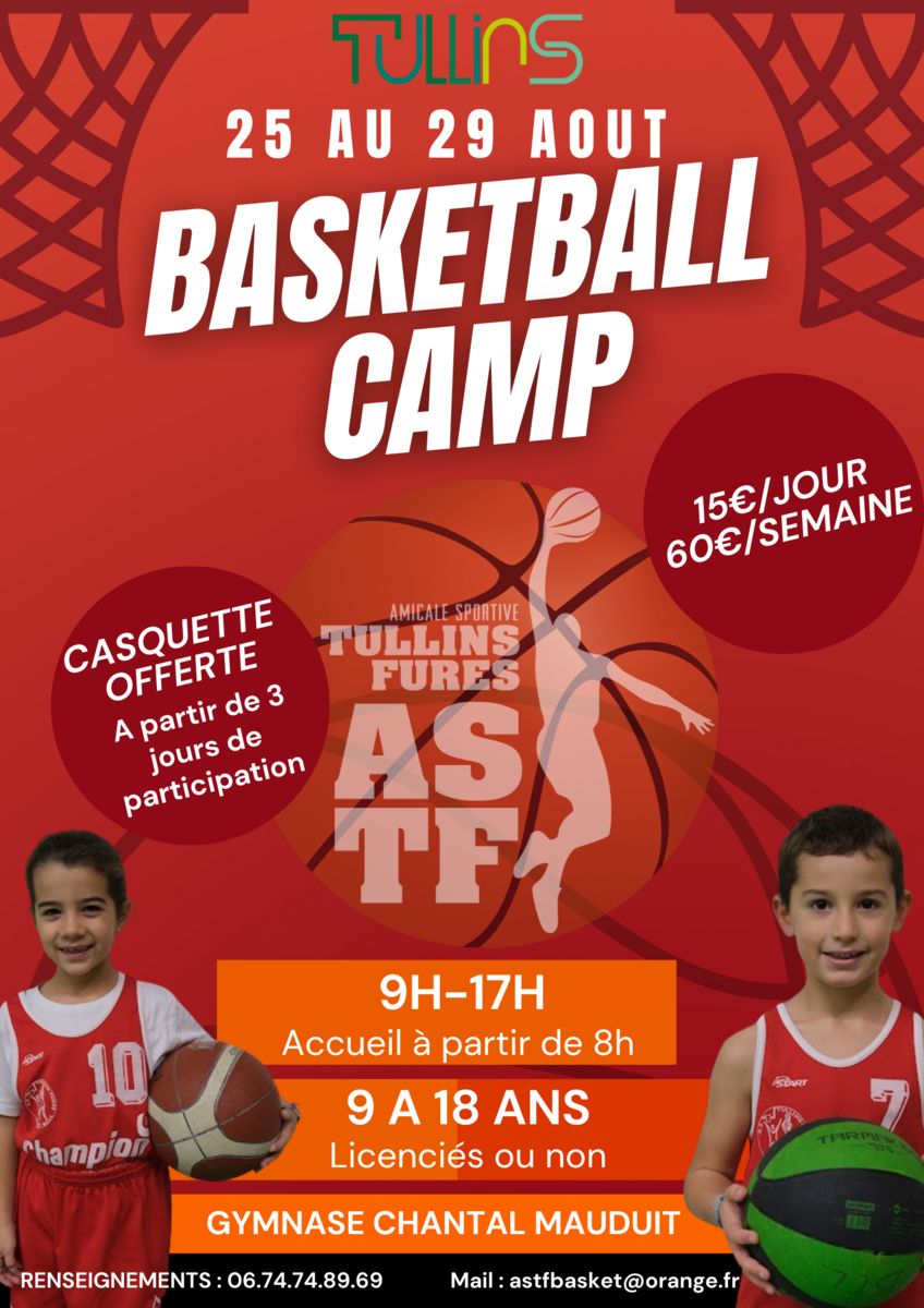 L'ASTF Basket organise un stage du 25 au 29 AOUT, ouvert aux jeunes de 9 à 18 ans licenciés et non licenciés. Au programme : 5 jours de basket, initiation et perfectionnement.
